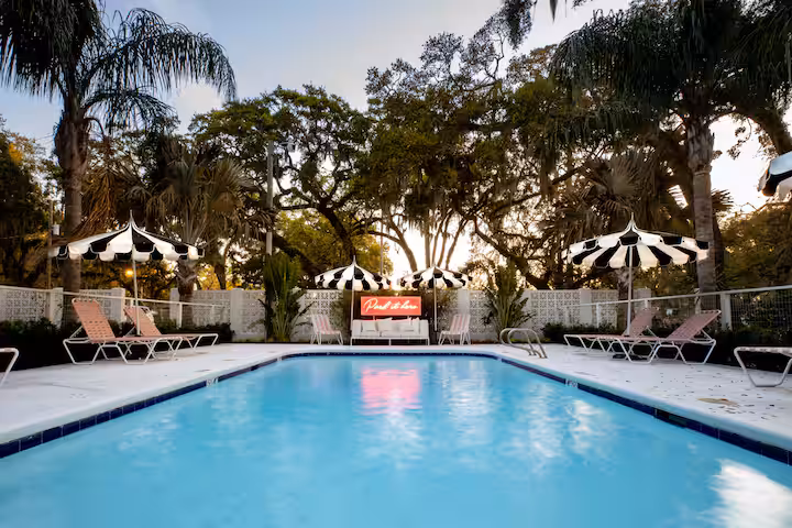 Quietly set under idyllic oak trees covered in Spanish Moss, The Park Buyout is five uniquely designed boutique vacation rentals booked as one large unit that is privately nestled around a gated swimming pool. This property is only a two-minute walk from The Pier Village on St. Simon Island, Georgia and a bike's ride from the beach.